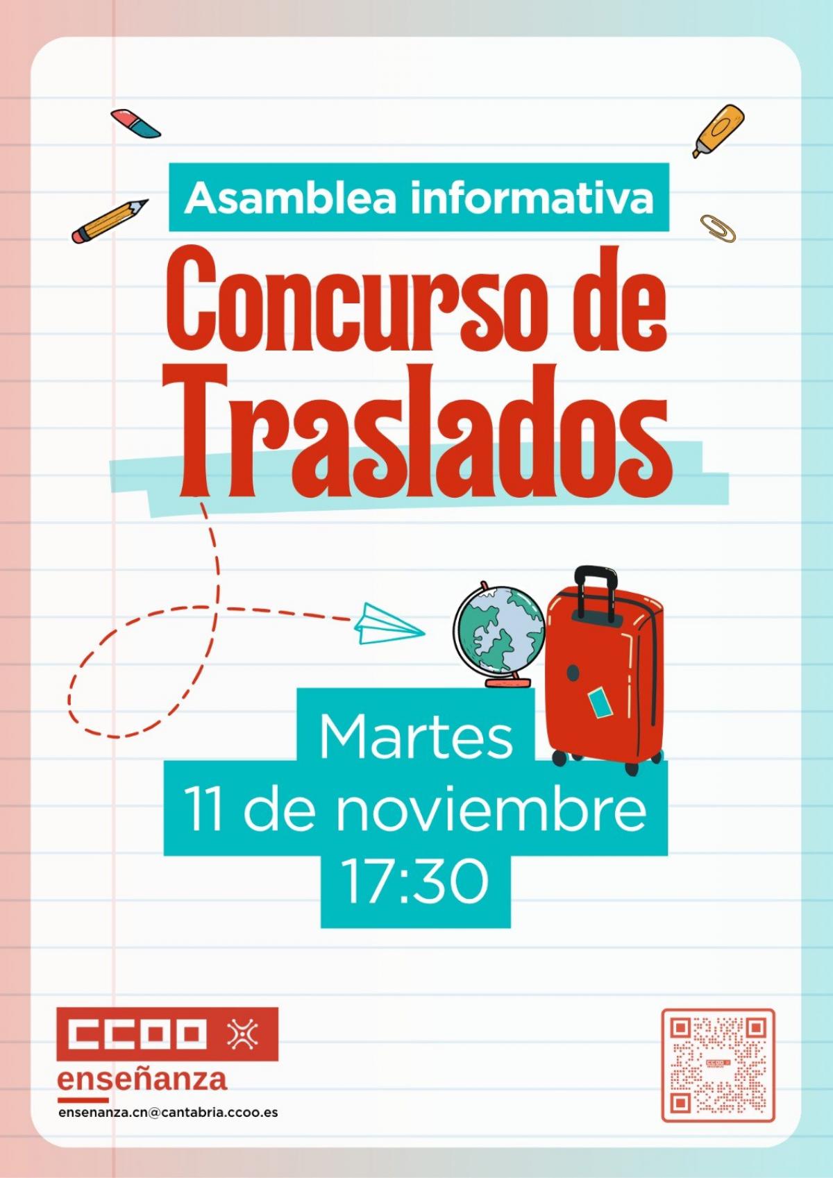 Pero para explicar todo con más detalle y resolver cualquier duda, vamos a realizar una asamblea informativa sobre el Concurso de Traslados el próximo martes 11 de noviembre, a las 17:30 h.